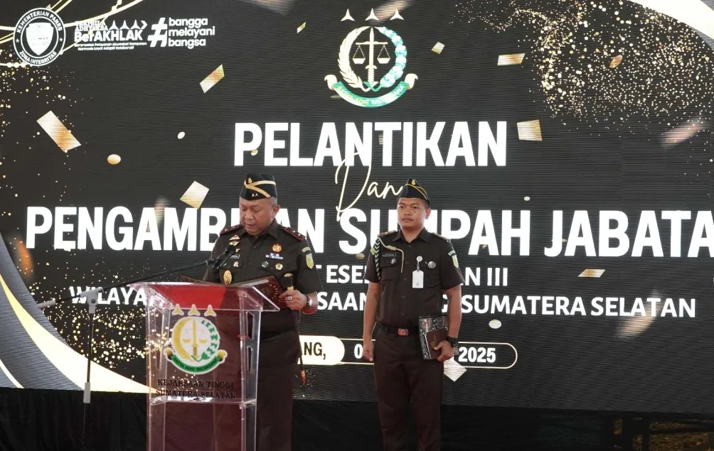 Kepala Kejaksaan Tinggi (Kajati) Sumatera Selatan (Sumsel), Dr Ketut Sumedana melantik dan mengambil sumpah jabatan delapan pejabat eselon II dan III di di Halaman Kantor Kejaksaan Tinggi (Kejati) Sumsel, pada Senin, 3 November 2025.